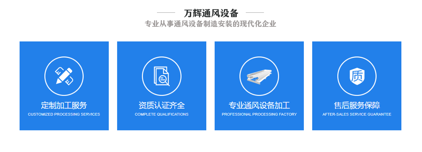 山東萬輝通風設備有限公司是一家專業從事通風設備制造安裝的現代化企業,公司多年從事通風天窗、通風設備、屋頂自然通風器、各種風機的設計、生產、銷售、安裝為一體。本公司主要生產:通風天窗,通風氣樓等產品暢銷29個省(市、自治區),深受廣大用戶的信賴。   公司主要生產和經營環保型屋面無動力通風器、氣樓不銹鋼屋頂風機、離心風機、軸流屋頂風機等各種產品,以及通風系統的設計規劃,生產和安裝。公司生產的各種通風器是能滿足市場多種需求的理想的通風換氣設備,具有國內先進水平,我公司的通風設備被廣泛應用于工業車間、倉庫、花卉養植、畜牧養殖、賓館飯店、高檔社區、公共設施等領域。公司以“品質至上,服務優先”為宗旨,無論產品和服務均力求達到卓越標準,以其良好的信譽在全國各地區贏得了廣大市場及穩定的市場占有率,以過硬的質量和良好的服務贏得了專家的好評和廣大用戶的信賴。產品質量好、性能穩定深受客戶好評,近年來與全國多家大型企業建立了長期的合作關系。    公司所有人員在總經理的帶領下,產品質量上不斷研制、開發、創新,提供更優質的產品和真誠的服務滿足客戶。 本公司秉承“顧客至上,銳意進取”的經營理念,堅持“客戶至上”的原則為廣大客戶提供優質的服務。歡迎廣大客戶惠顧! 公司愿以...